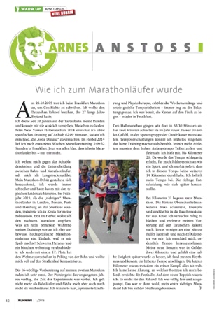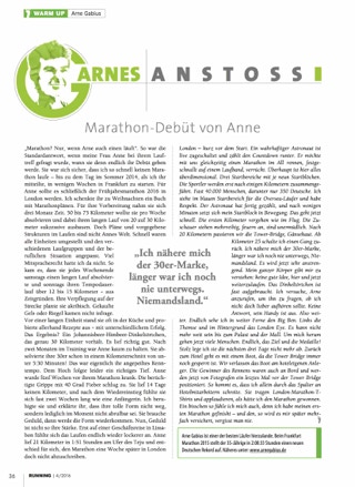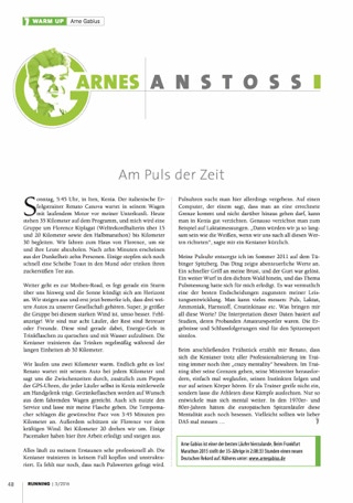 Seit März 2016 habe ich in der deutschen Ausgabe der Runner´s World eine eigene Rubrik. In Arnes Lauf-ABC nehme ich mir jeden Monat zwei Buchstaben, also zwei Begriff aus der Läuferwelt…