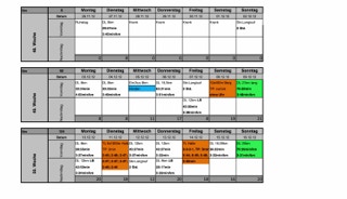 Etwas gewarnt begann ich die nächsten 3 Wochen vorsichtiger. Der Umfang lag bei 148 bis 158km pro Woche und die beiden Bahneinheiten waren kontrolliert. 8x1000m in 2:49min mit einer Trabpause von 2min und die Canova-II-Einheit (500m in 82sek mit Trabpause von 900m in 3:01min).